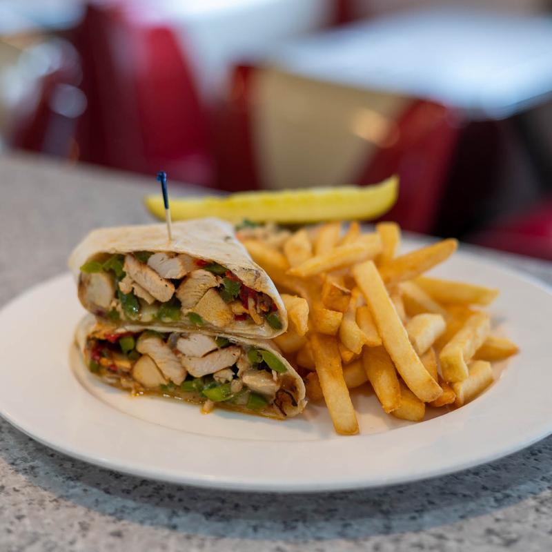 Any sandwich on a Croissant Roll +$2.00 | Any sandwich into a wrap +$1.00 | Gluten Free Bun +$3.00 | Deluxe with Fries or Chips +$3.00 | Deluxe with Sweet Potato Fries, Tater Tots, Waffle Fries, Curly Fries, or Onion Rings +$3.50 • Served with lettuce, tomato, onion, coleslaw, macaroni salad, and pickle