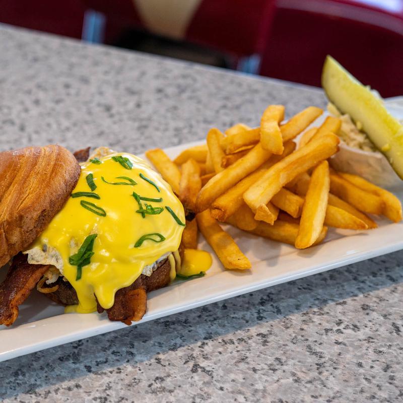 All Specialty Burger are Served with fries, chips, baked potato, or small green salad. Deluxe with sweet fries, onion rings, waffle fries, or tater tots $2.50 charge